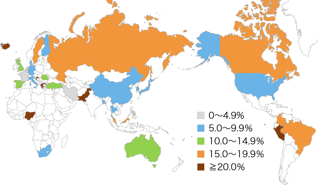 国際的な調査では、何らかの機能性消化管疾患の症状を持つ人のうち、過敏性腸症候群(IBS)の基準を満たす人は4.1%と報告されており、世界中で多くの人が悩む疾患であることがわかります。