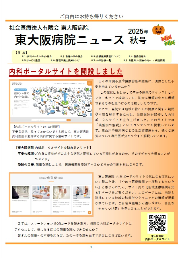 東大阪病院では年4回「東大阪病院ニュース」を刊行・配布しております。