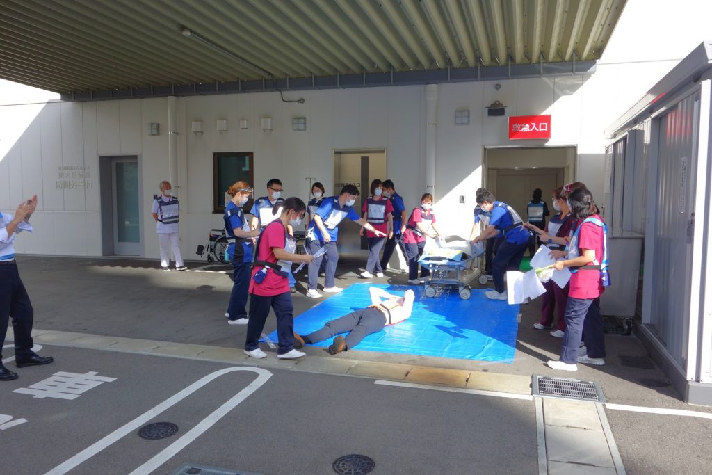 多数の負傷者や一般避難者が病院に来院したという想定のもと、傷病の重症度と緊急度を判断する「トリアージ」訓練を実施しました。