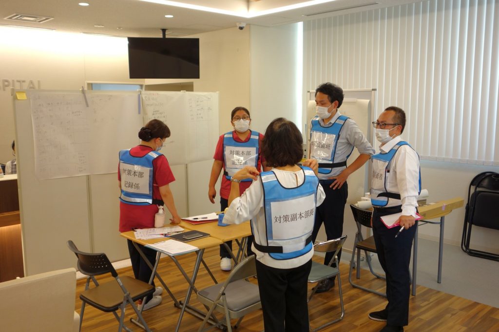 迅速に災害対策本部を立ち上げ、院内の被害状況、外部機関との情報共有ルートを確立する訓練を実施しました。