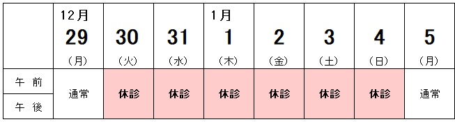 ※ 救急診療(内科・整形外科)は例年通り行っております。