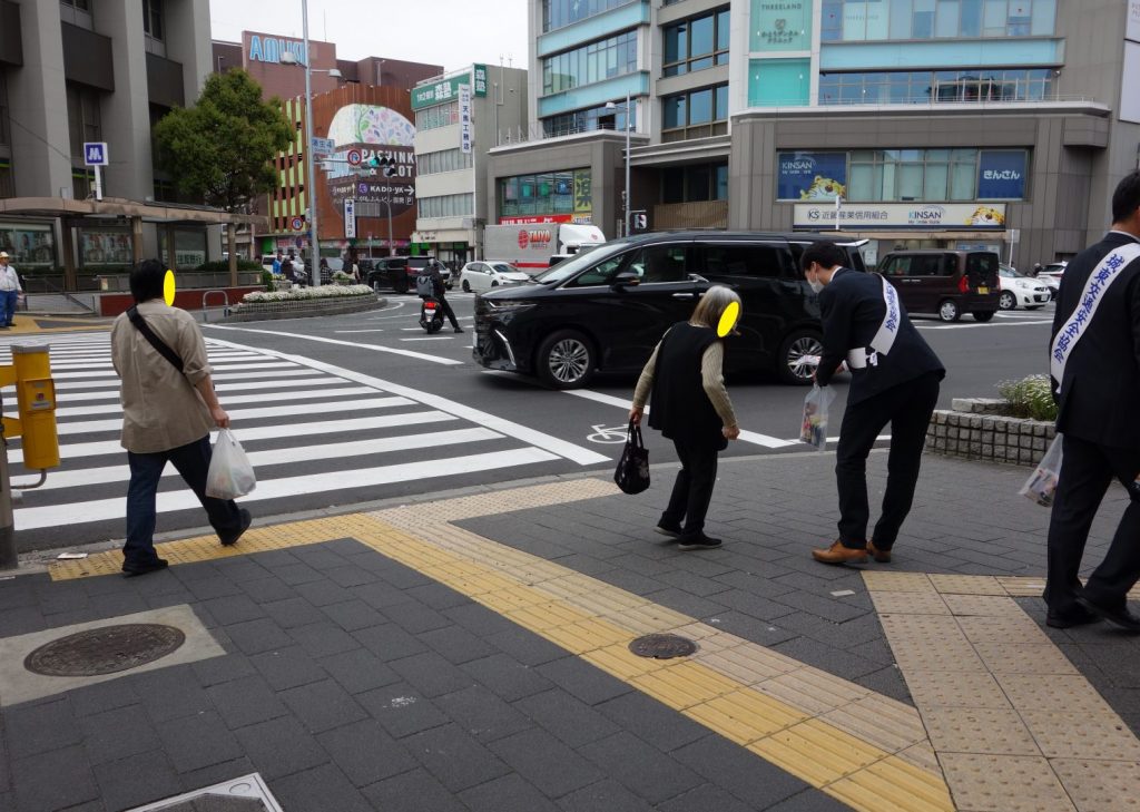 4月6日には、蒲生四丁目交差点において街頭キャンペーンを実施し、当院職員が城東交通安全自動車協会のタスキを着用のうえ、通行される皆さまへ交通安全に関する啓発ビラの配布を行いました。