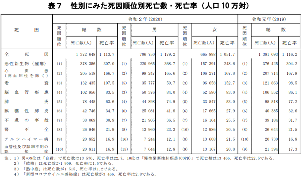 (厚生労働省「令和2年(2020) 人口動態統計月報年計(概数)の概況より引用」)
